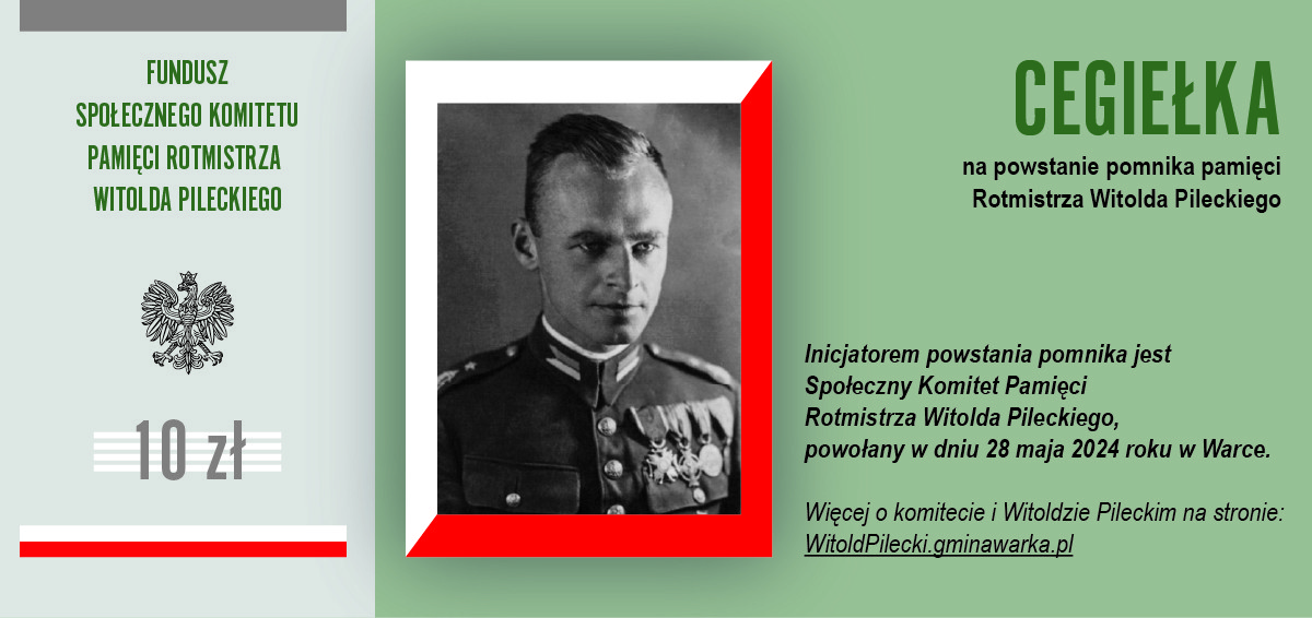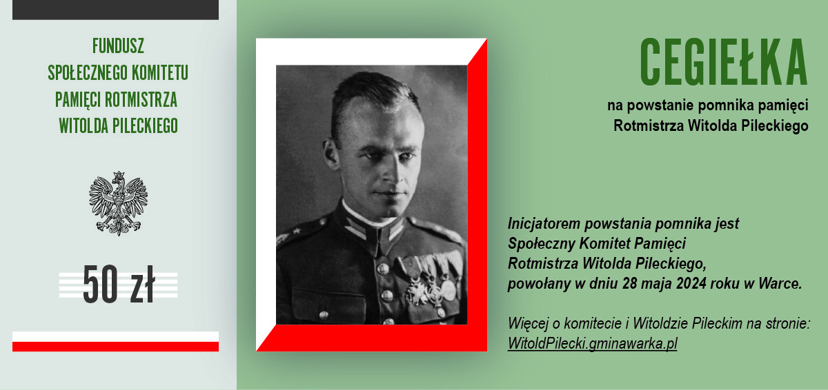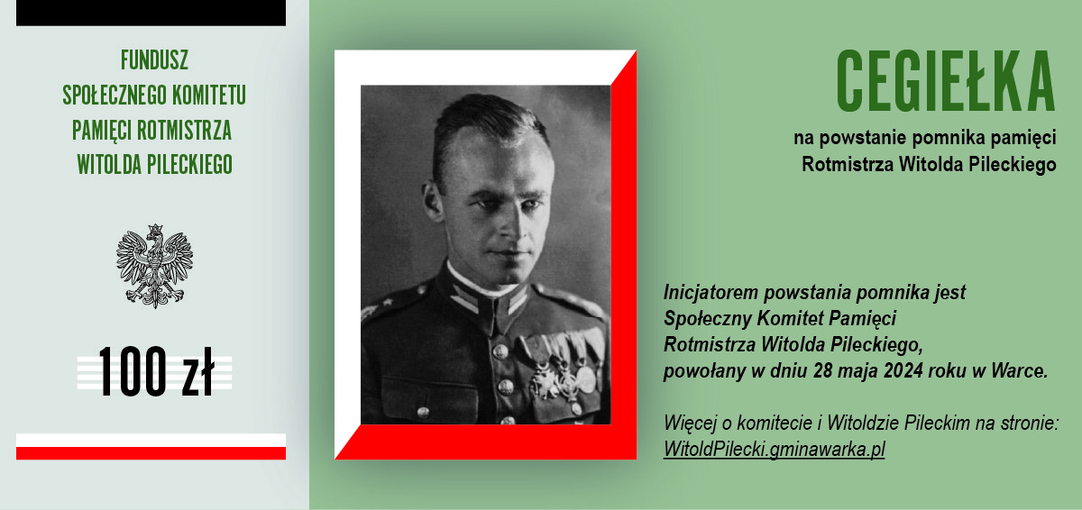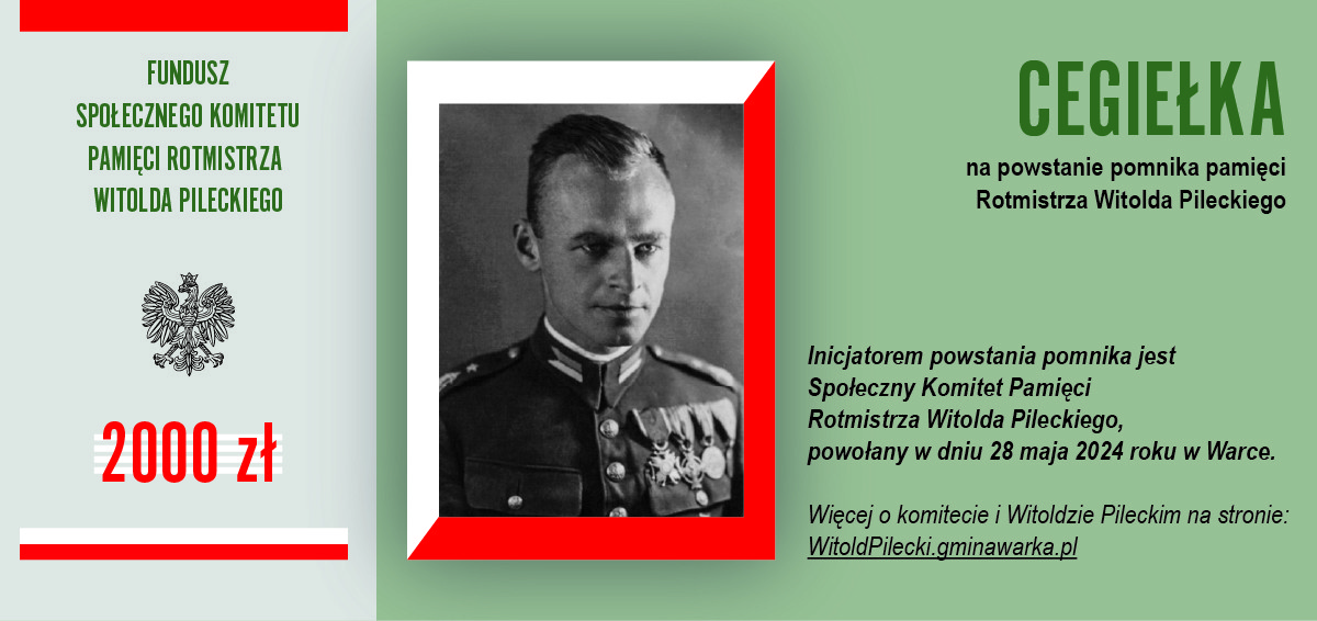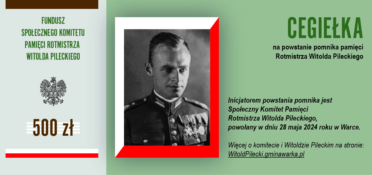 Dołącz do tej inicjatywy i wesprzyj budowę pomnika rotmistrza Witolda Pileckiego w Warce. Dzięki Tobie jego niezłomna postawa i poświęcenie na zawsze zostaną upamiętnione w sercu miasta, przypominając nam wszystkim, jak wielkie znaczenie mają odwaga, honor i miłość do ojczyzny.