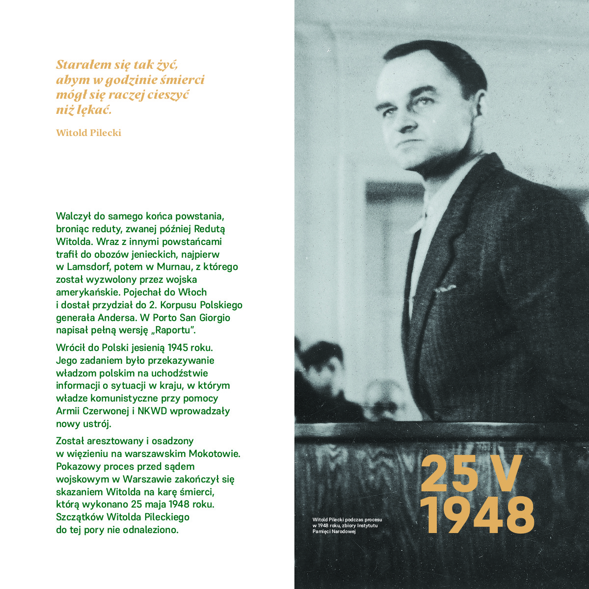 Pilecki został skazany na śmierć przez władze komunistyczne Polski Ludowej, po brutalnym procesie pokazowym w 1948 roku.